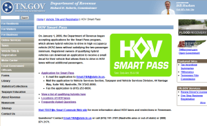 I applied for a Tennessee HOV Lane Smart Pass decal which will allow me to ride in the HOV lanes in Tennessee regardless of the number of passengers in the vehicle.