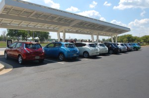 The turn out at the 1st Middle Tennessee LEAF meetup at Nissan US manufacturing and logistics facility at Smyrna TN was a resounding success!! I counted 9 LEAF’s, most of which quickly hooked up to the Blink Level 2 solar assisted chargers. Of the 9 chargers at Nissan 8 worked flawlessly, one was, ‘on the blink’ so to speak.