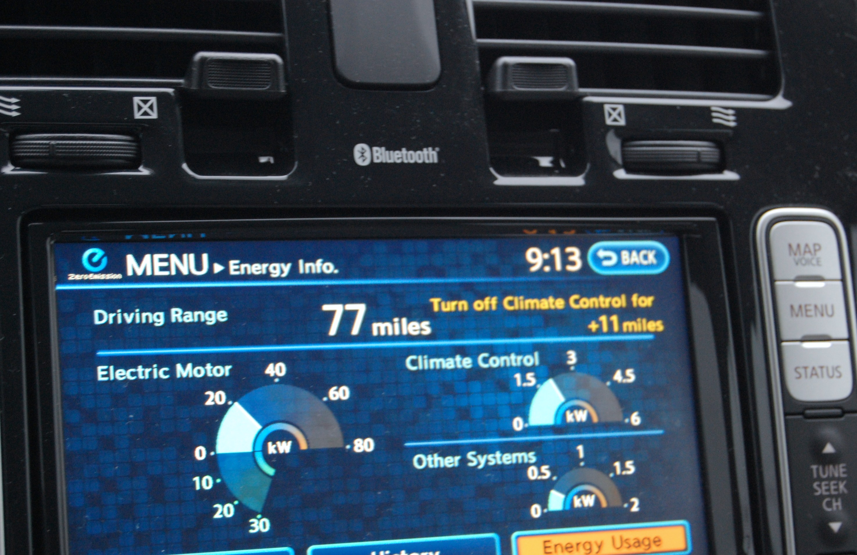 In a regular car once the gas gauge indicates there are just 2-3 gallons left, one starts to make mental plans to fill up. With an electric car one starts full with slightly more range than 3 gallons of gas would take you and then run it down to almost empty, ‘Almost empty’ being say 12 miles of range which is a comfortable margin for me, others report they are happy to run it down much further. At first the limited range seems inadequate, anxiety about running out of electric may start shortly after setting out for the day. However once one realizes that the gauge in an electric car is more accurate and predictable than that of a gas car one adjusts to ‘running low’ after a few months and range anxiety disappears.