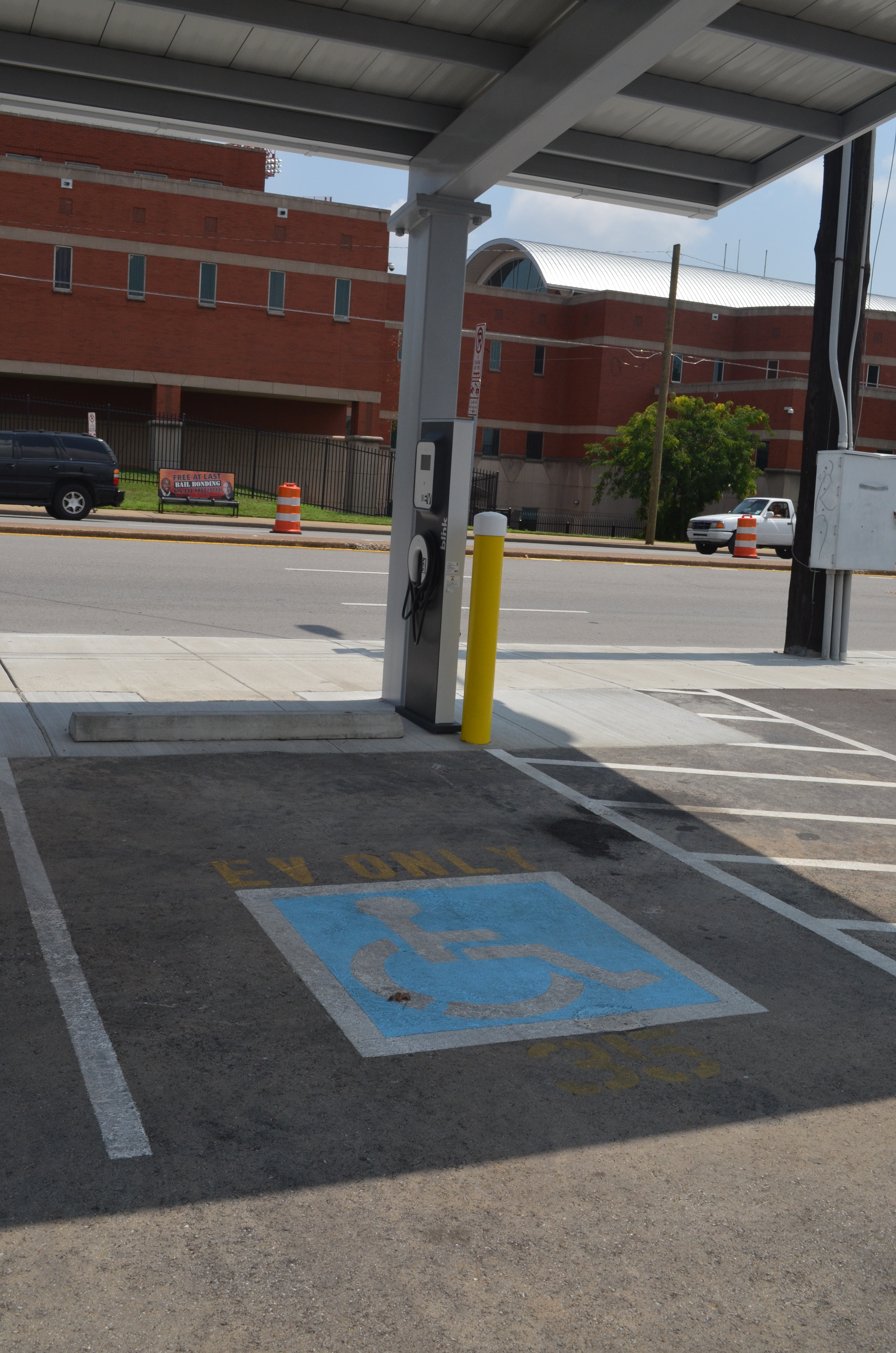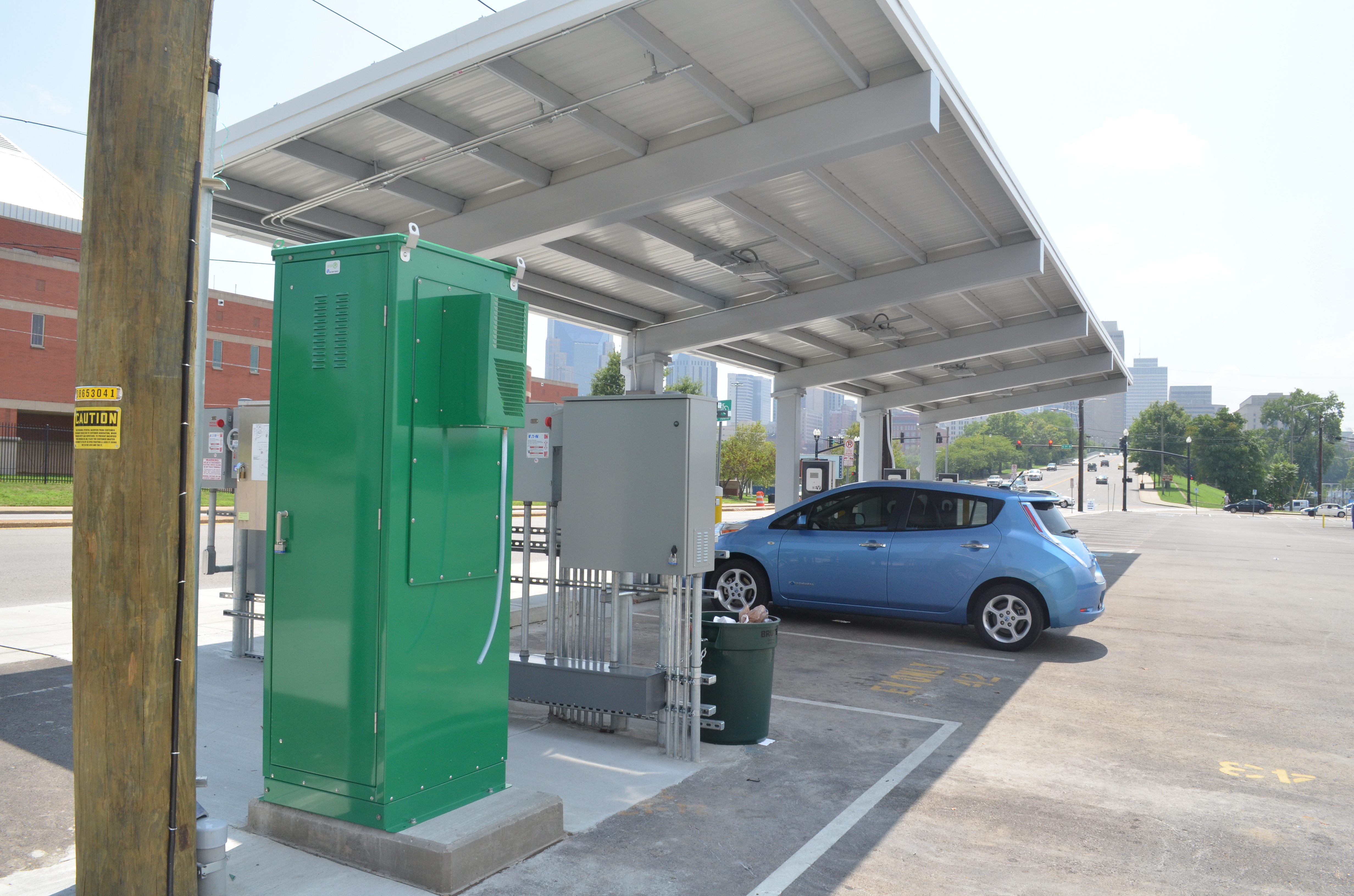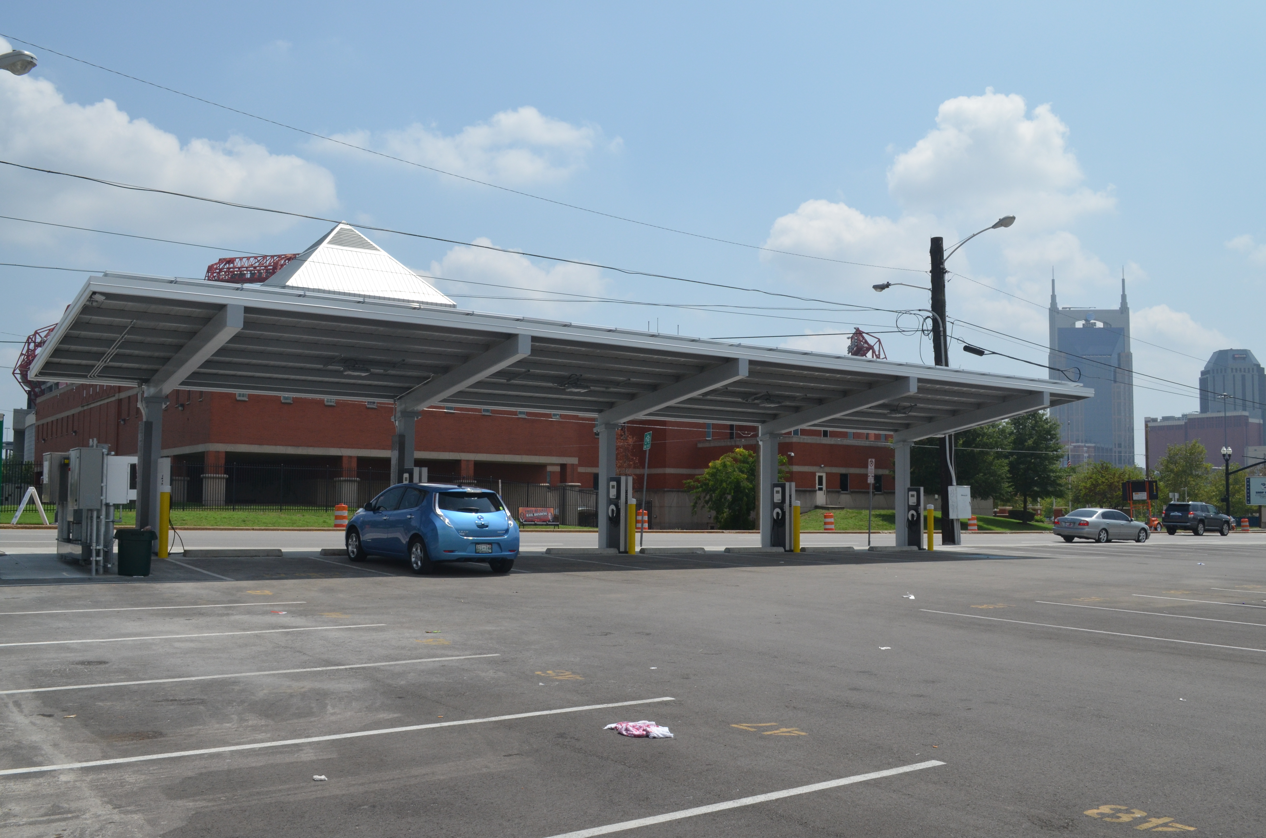Almost adjacent to the Titans Stadium one will now find eight brand new Blink Electric Vehicle charging stations which are shaded by a large solar canopy.