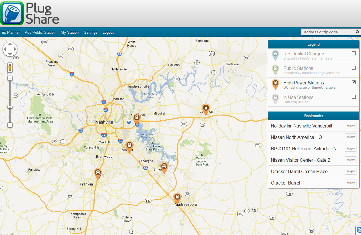 The quick charge stations are to the south and east of Nashville but there are no stations to the west or north of Nashville. I would really like to see one to the west of Nashville to make a return journey to Dickson TN convenient. I-40 at the intersection with the newly opened stretch of I-840 would be a great choice.