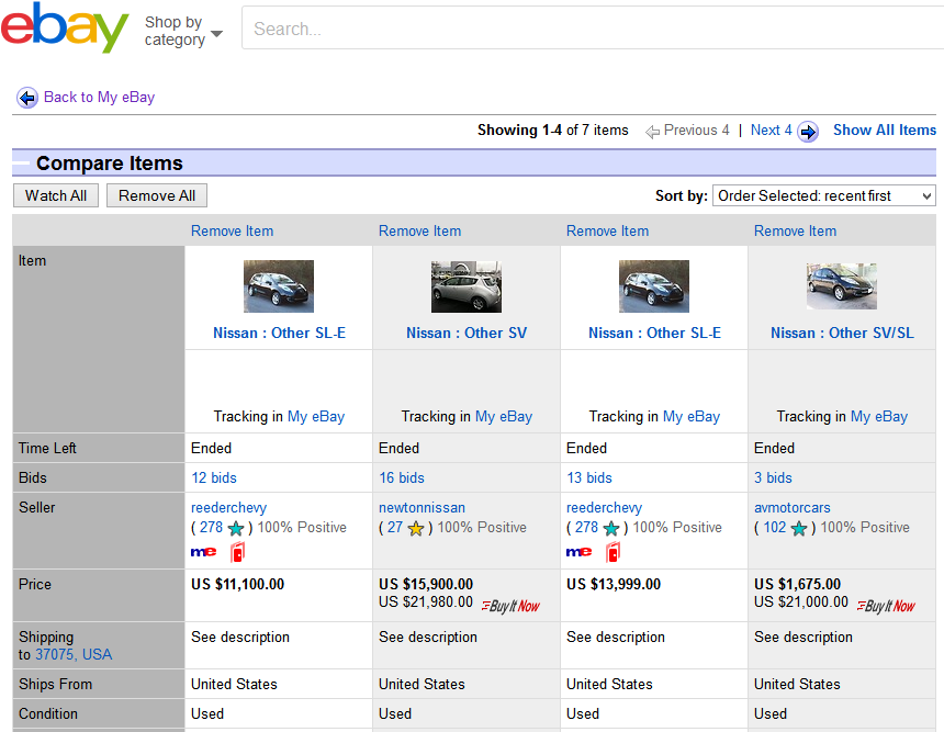 I have watched the used LEAF market over the last few months to try and see what a used LEAF will sell for. I watched 9 LEAF listings on eBay over a 4 month period. Here’s how the listing outcomes have broken down.