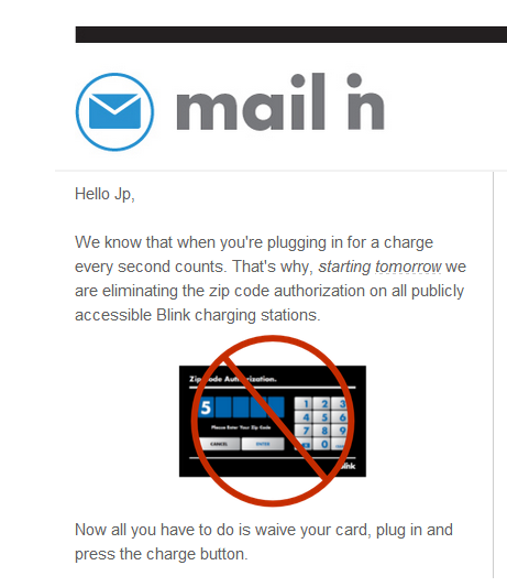 Blink Networks have just announced that with immediate effect all of the 4,000 public charging stations in their network will no longer require a ZIP code to be entered to begin a charging session. Hurray!!