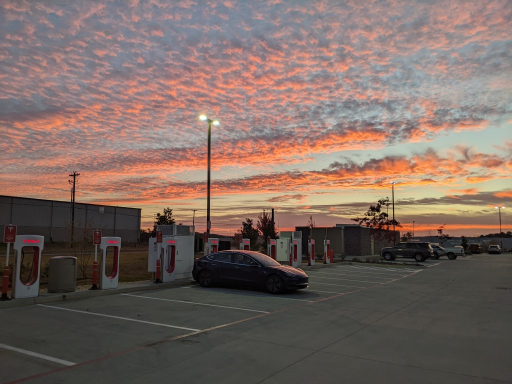 The plan was to stop at Kimball TN as our last charge. However as we were traveling up I-75 we noticed signs for Buc’ees ahead. Brisket sandwich vs Taco Bell was no contest. I did not navigate to the Supercharger as I prefered a slower charge to eat dinner. Buc’ees supercharger is in Adairville GA, well north of Atlanta. Another brand new location that had opened just three weeks prior. The Adiarville charger at Buc’ees was empty when we arrived, we got brisket sandwiches for dinner and ate while we charged. Two Teslas arrived as we ate dinner. I realized we could make it all the way home if we charged to 67% and would arrive at 9:40pm. I decided to just go for it and we did indeed get home by 9:40pm. A 13 hour drive. Autopilot makes driving less tiresome and at no time did I feel drowsy or in need of a nap.