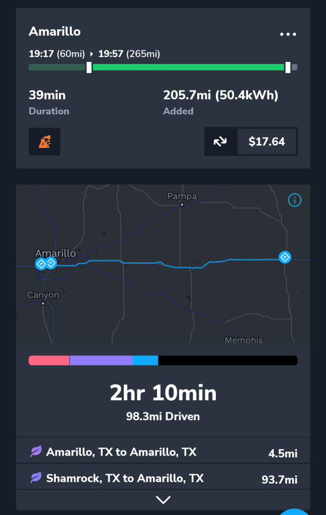 The final leg we took on day 2 was to Amarillo TX. We stopped to book a Hotel with EV charging. The hotel we booked hosted Tesla superchargers.